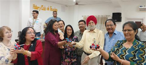 Presided by President Rtn. Bhanu Pratap Jain, the meeting opened wi. . .
